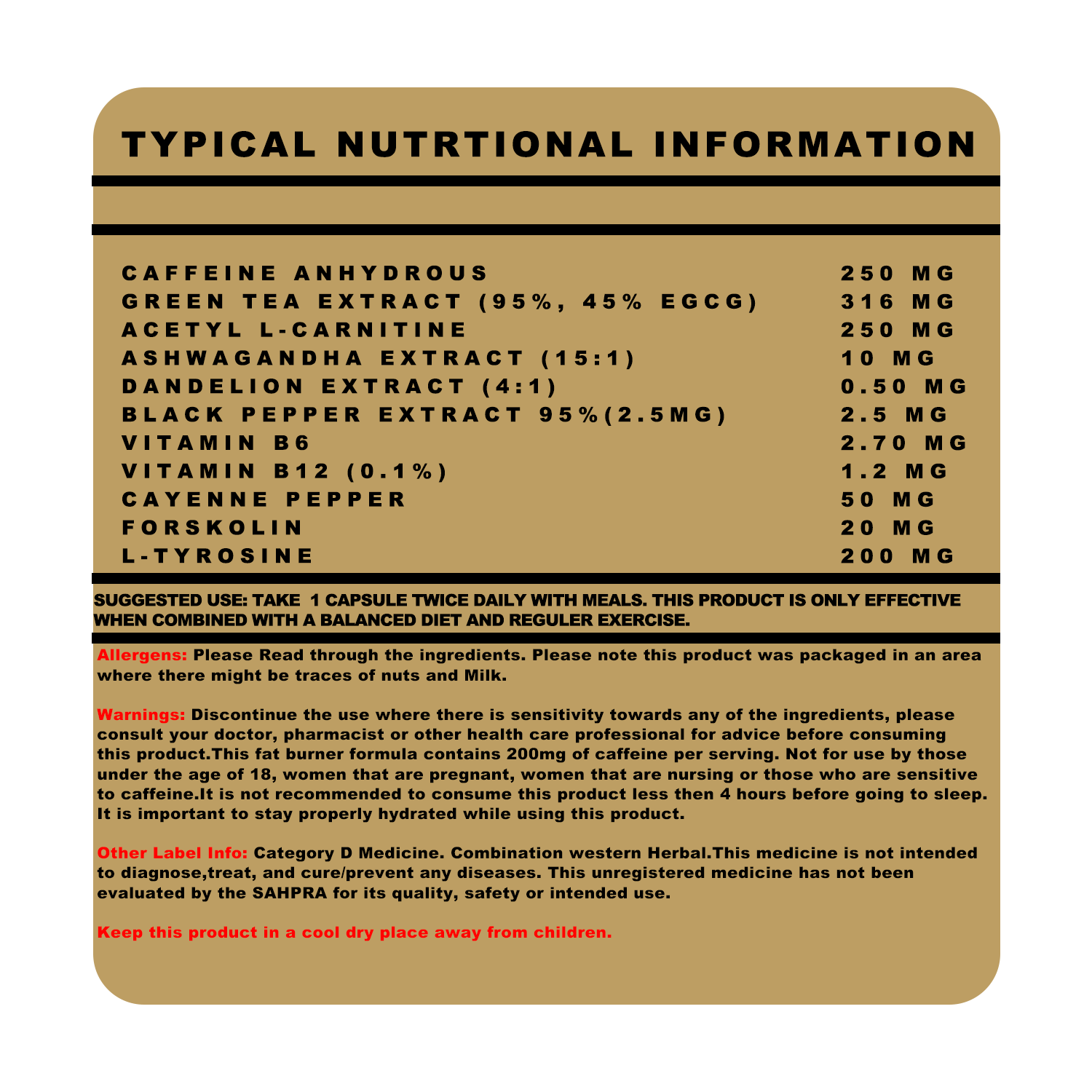 The addition of Dandelion Extract aids in water balance, while L-Theanine enhances neurological function and mental sharpness, keeping you focused and energised throughout high-intensity training sessions. Whether you’re aiming to shed excess fat, improve performance, or sustain peak energy levels, NLA Nutrition Thermogenic Fat Burner is your ultimate sports nutrition companion.